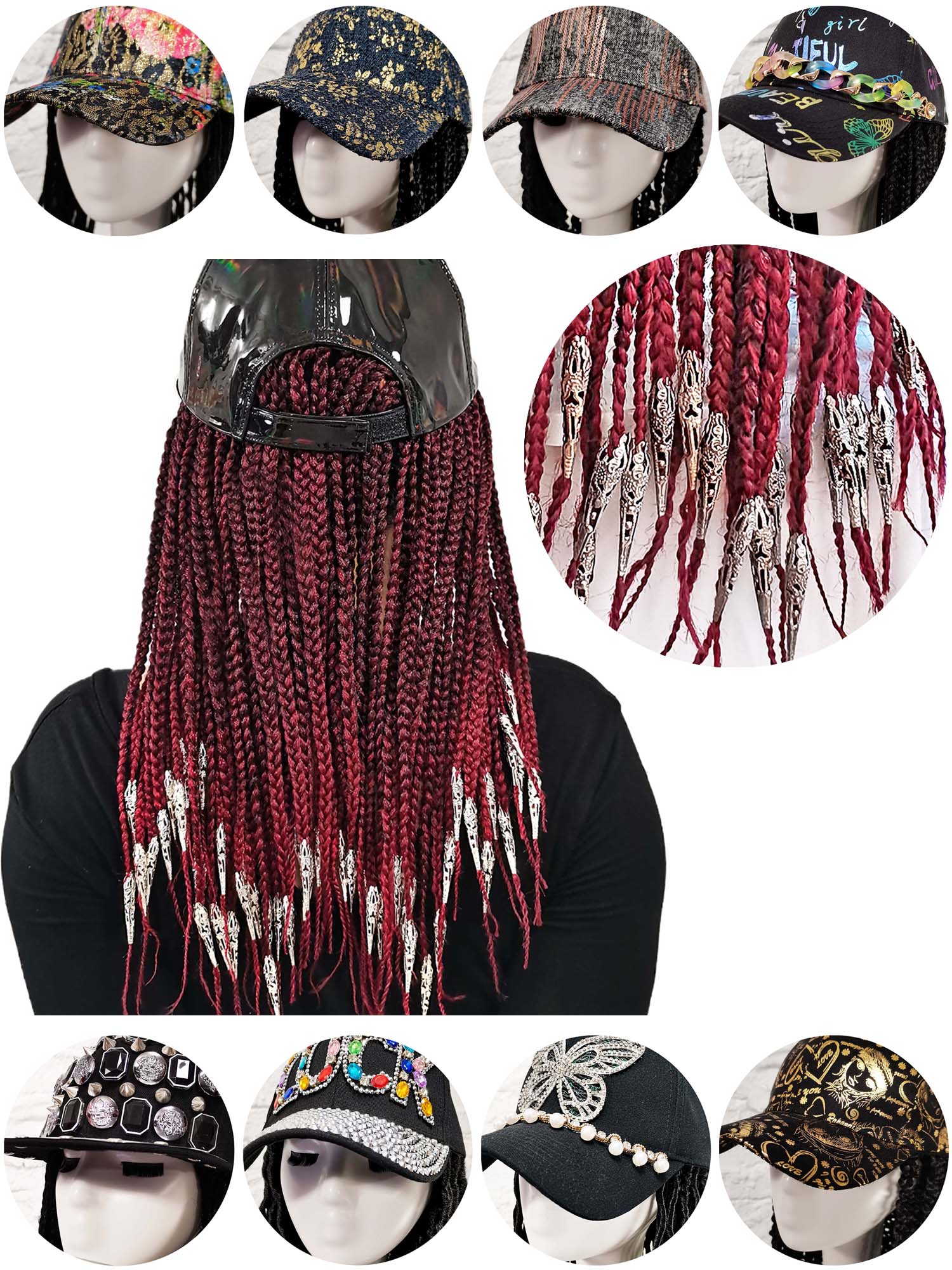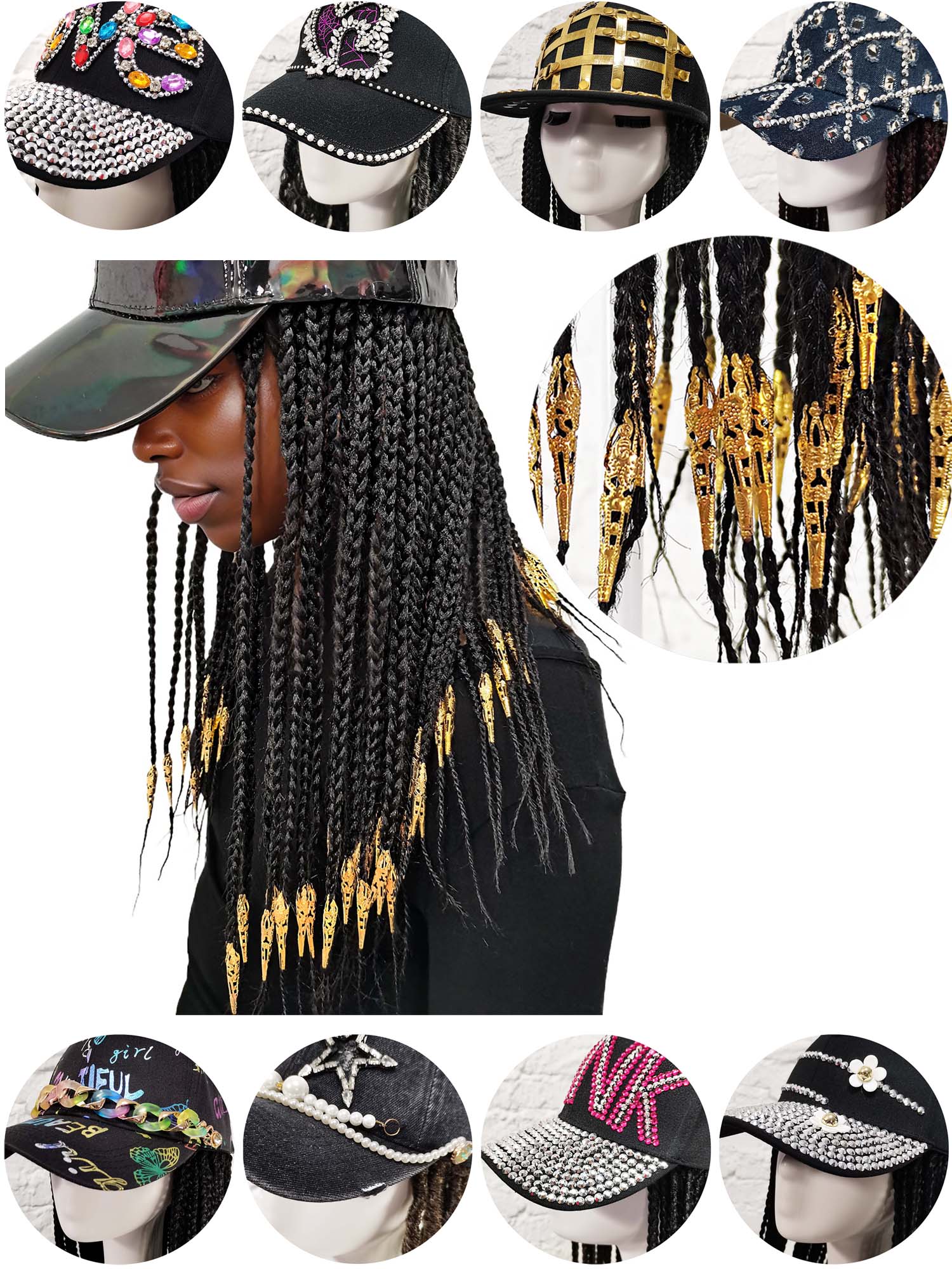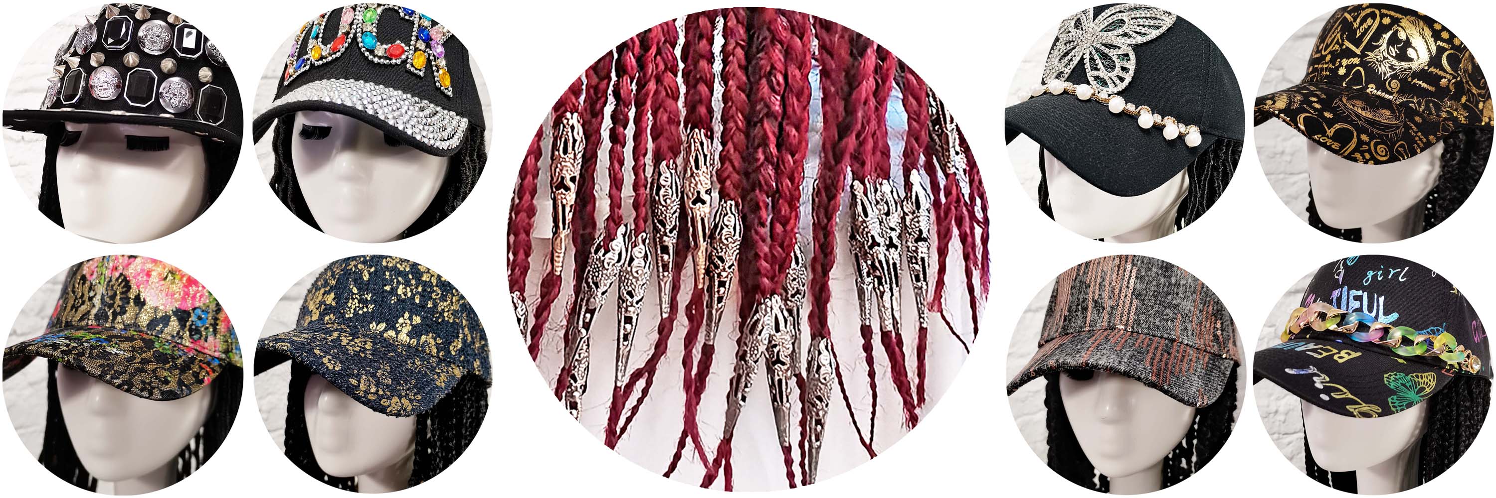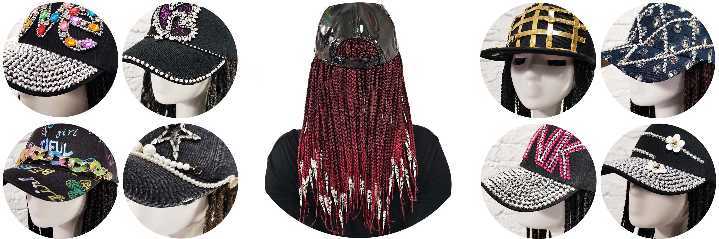 Every cap is a unique canvas – Swarovski, graffiti, pearls – crowned with your braid of choice.