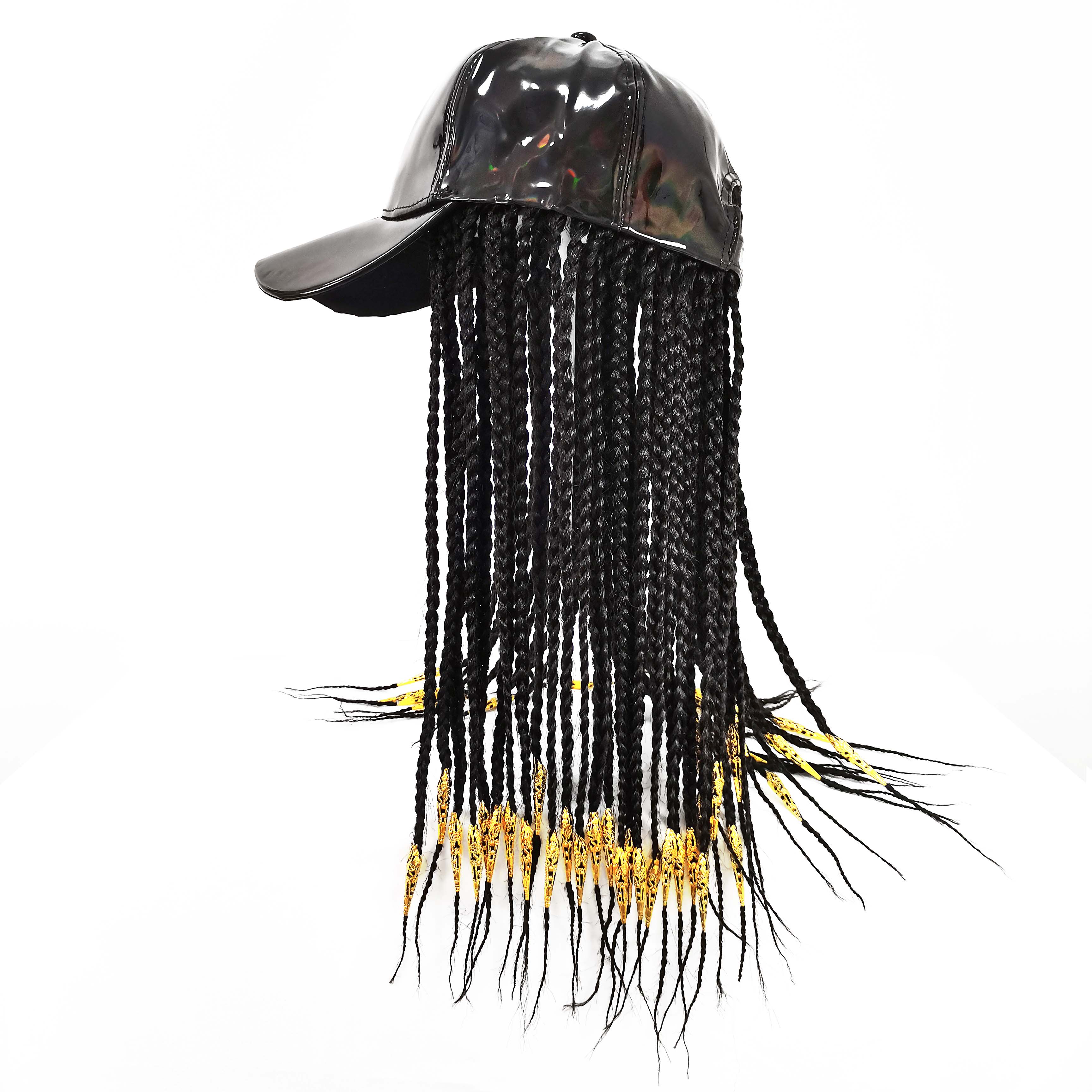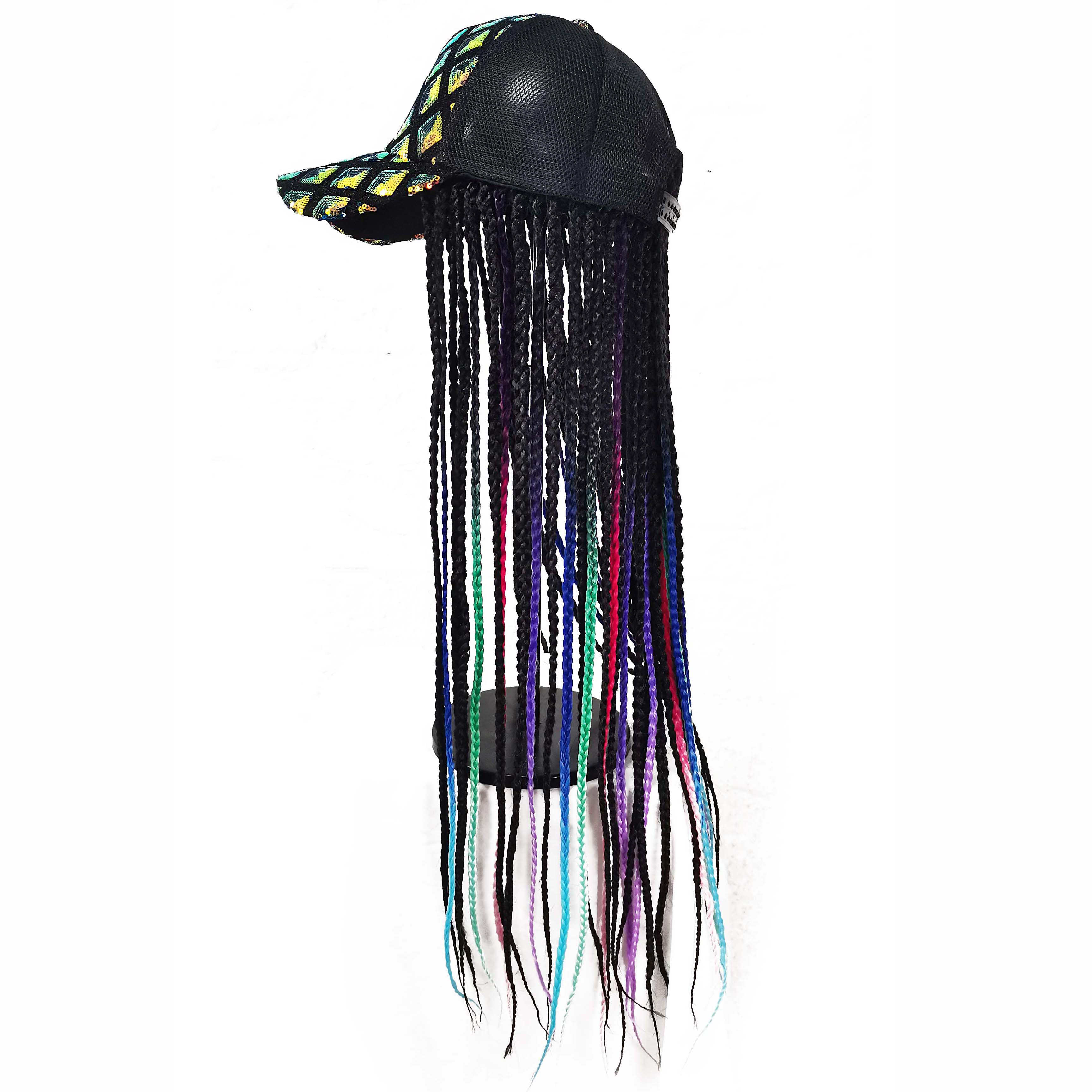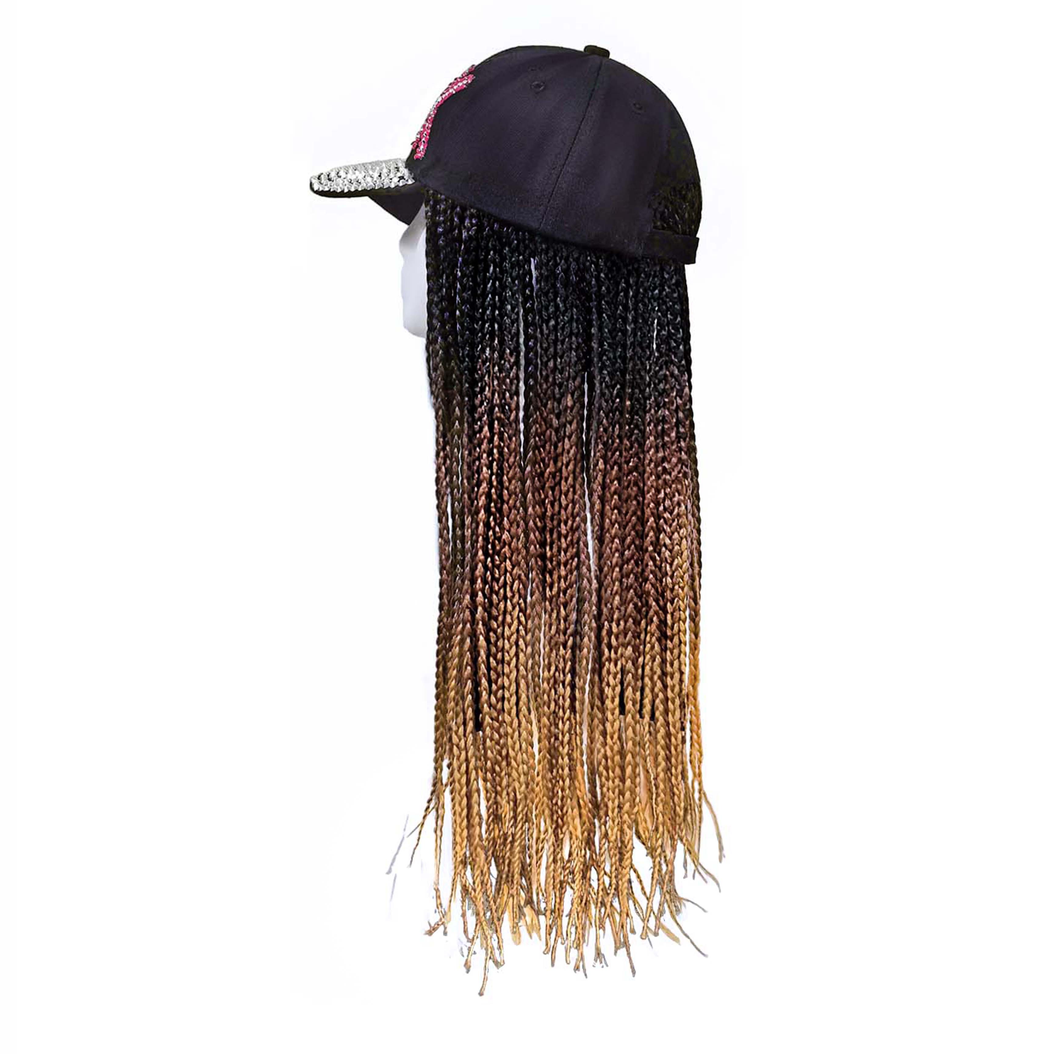 "I ordered this hat with hair for my teenage niece who is dressing up as a rapper for Halloween. The shiny front of the baseball cap is eye catching, but my favorite part of this hair hat is the hair. The extensions are brilliant shades of pink, blue, purple and black. I have alopecia so the cap was way too large for me, but my niece has a lot of hair to put under a wig cap which helps this stay on. My niece is thrilled with this hair hat."