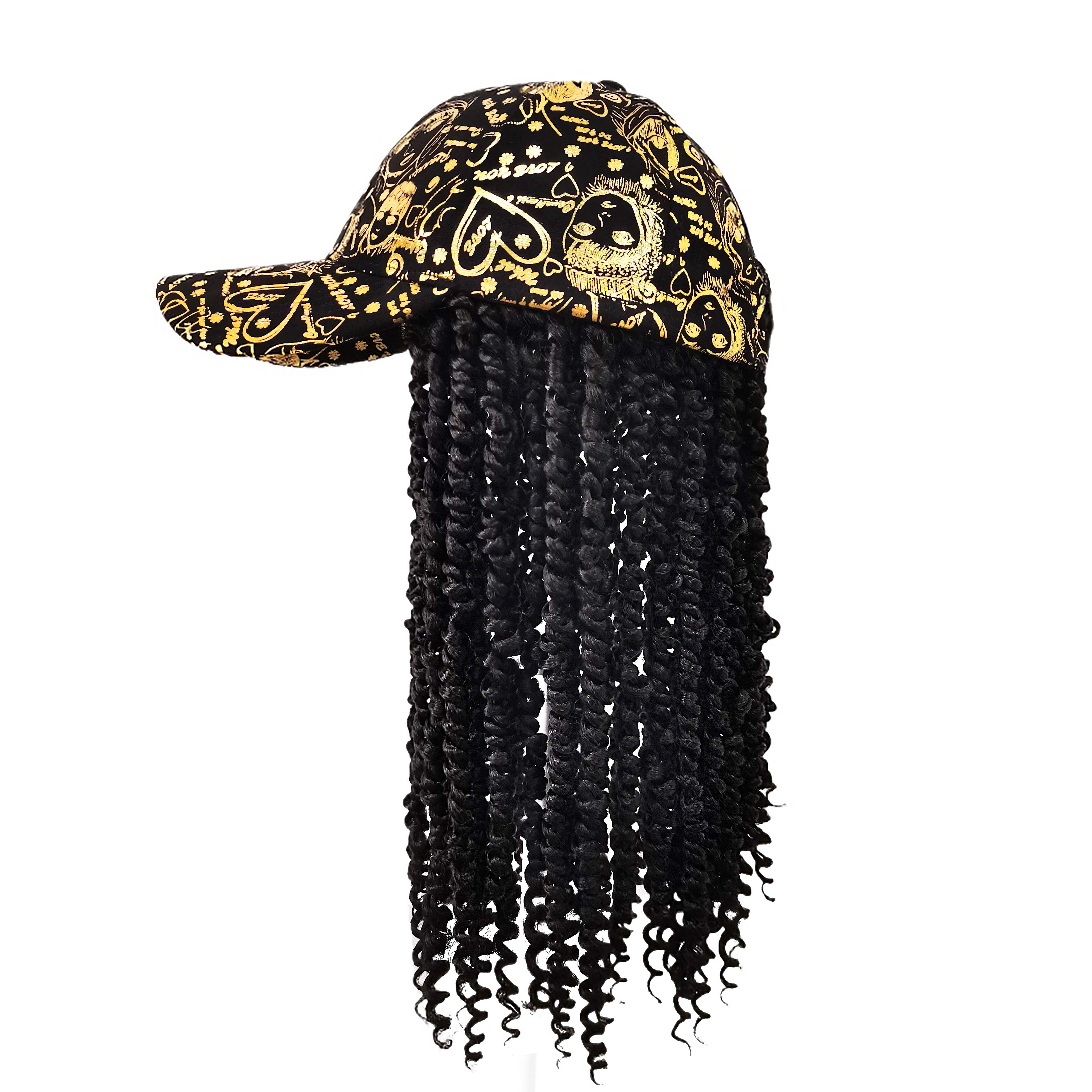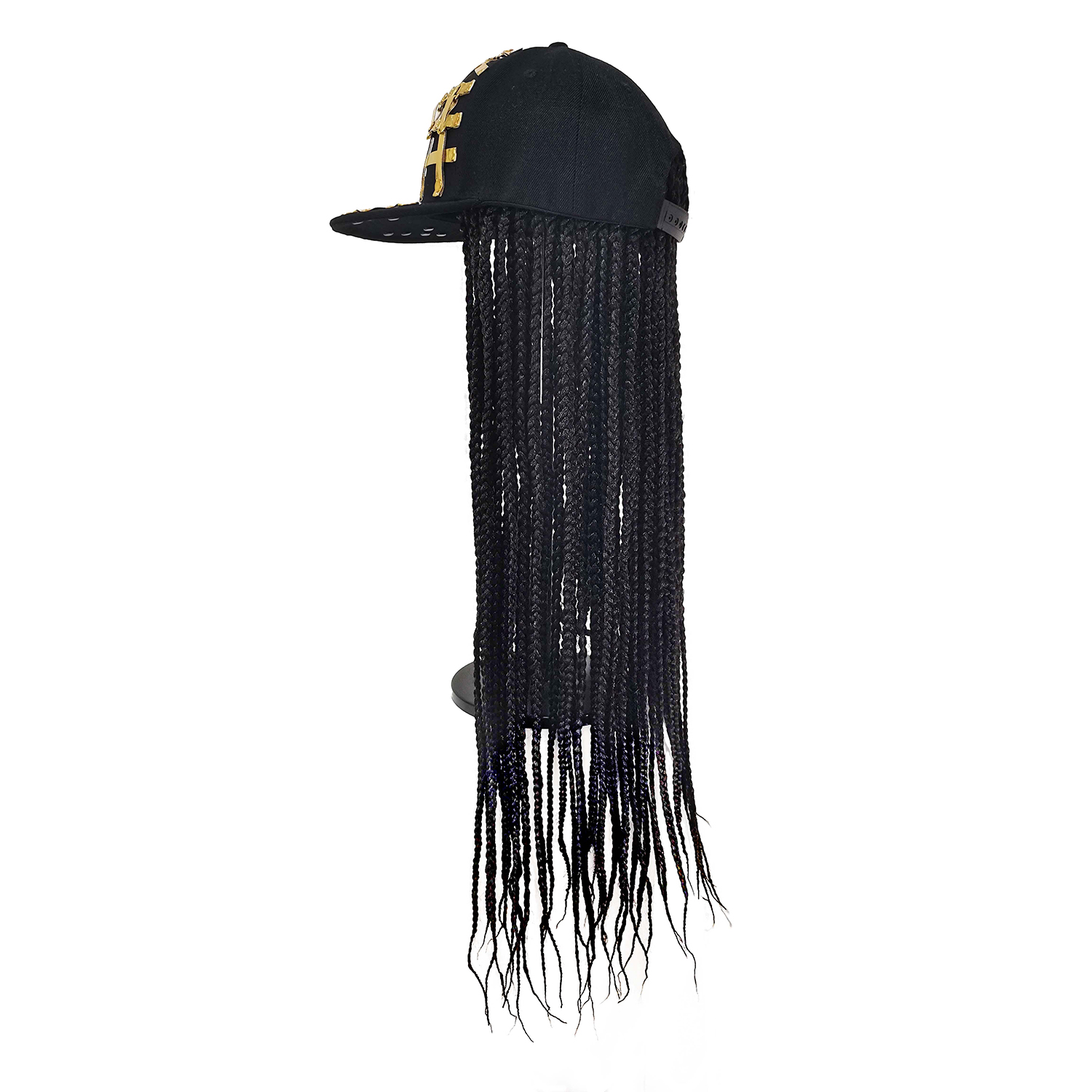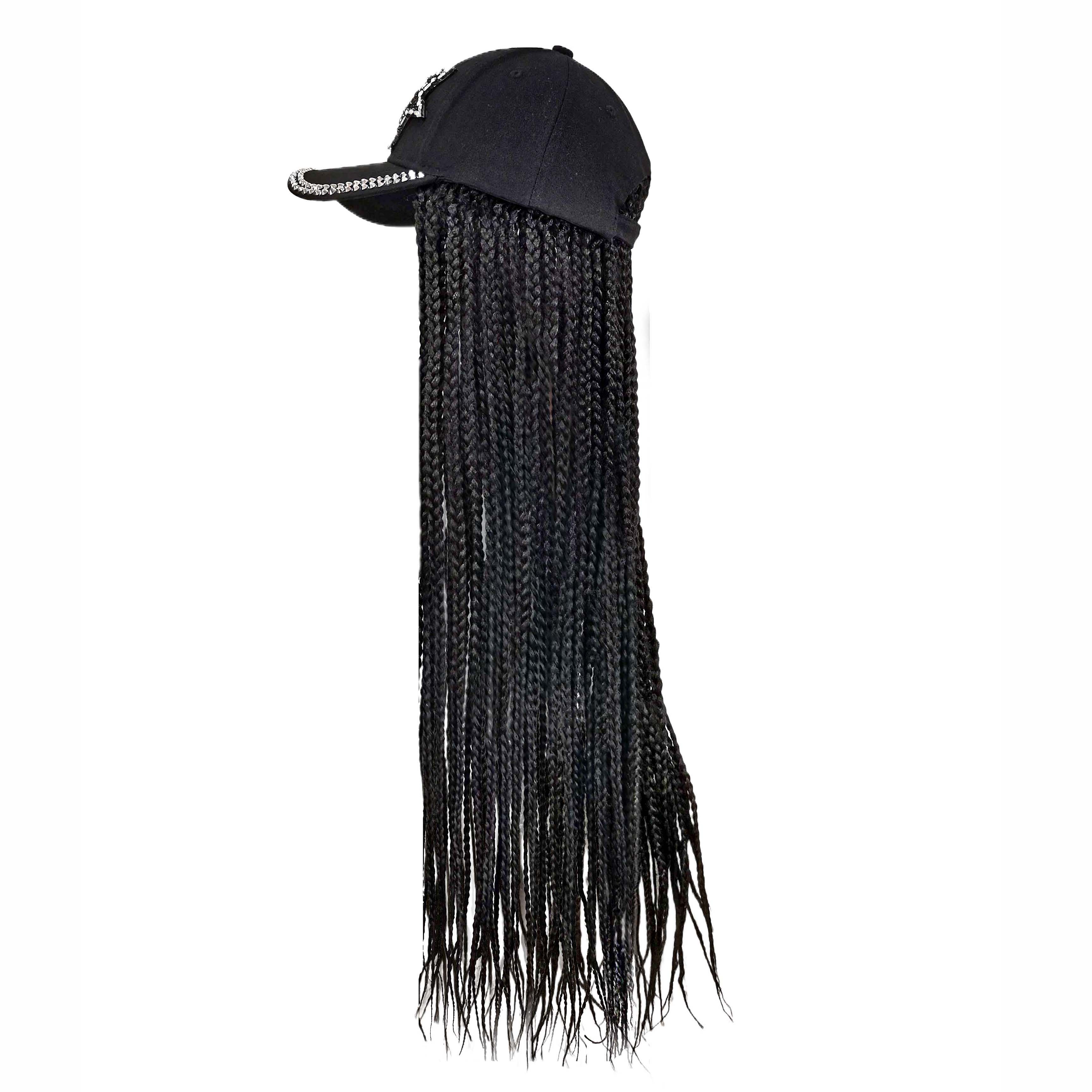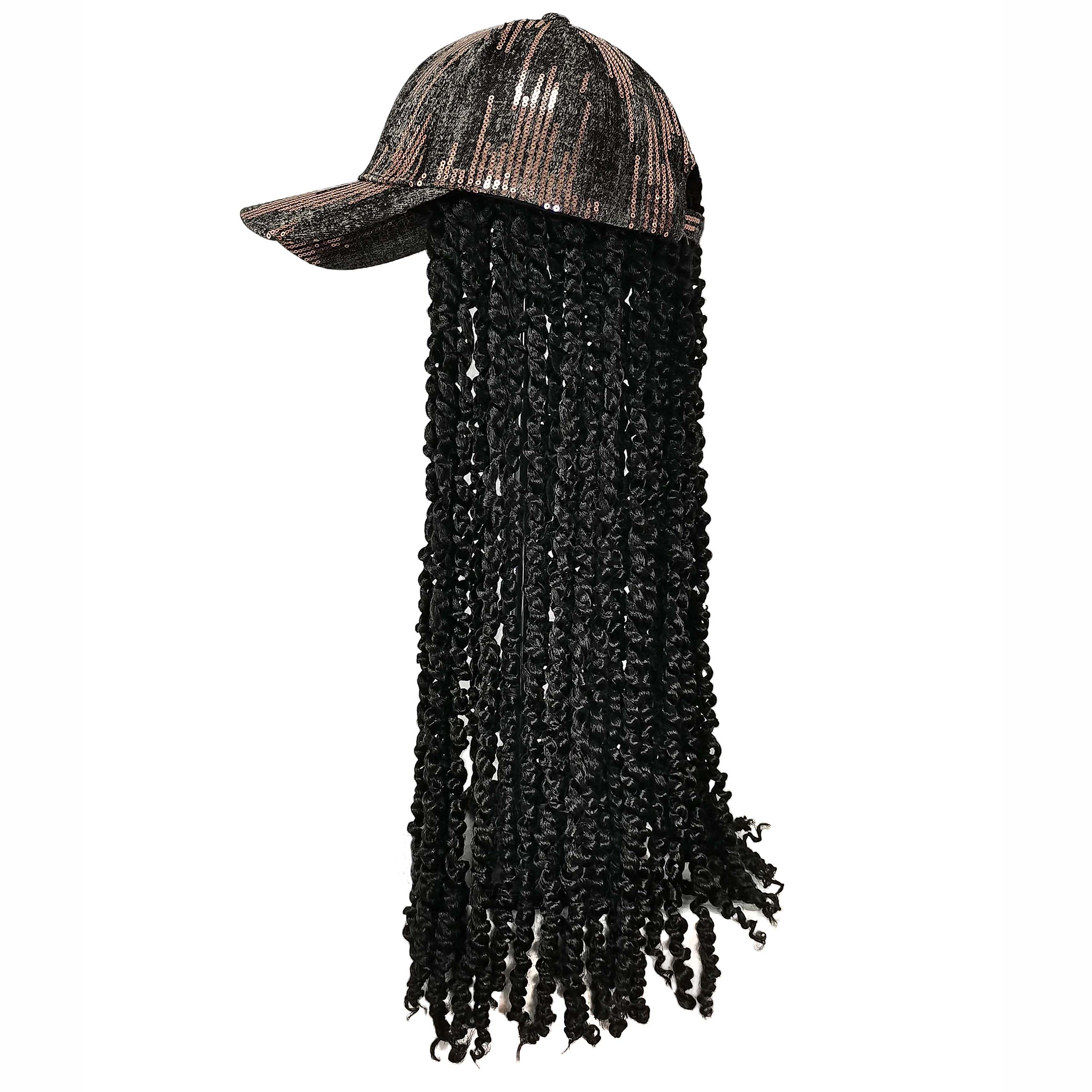 "I ordered this hat with hair for my teenage niece who is dressing up as a rapper for Halloween. The shiny front of the baseball cap is eye catching, but my favorite part of this hair hat is the hair. The extensions are brilliant shades of pink, blue, purple and black. I have alopecia so the cap was way too large for me, but my niece has a lot of hair to put under a wig cap which helps this stay on. My niece is thrilled with this hair hat."
